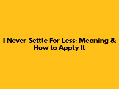 Have you ever heard the phrase "I never settle for less" and wondered what it truly means? Well, guys, it's all about refusing to accept mediocrity and always striving for the best possible outcome in every aspect of your life. Whether it's your career, relationships, personal growth, or even your daily habits, the principle of not settling for less encourages you to pursue excellence and fulfillment. It’s about setting high standards and having the courage to demand them. Understanding this concept can be a game-changer, pushing you beyond your comfort zone and leading you toward a more satisfying and purposeful existence. It's not about being greedy or unappreciative; it's about recognizing your worth and deserving the best life has to offer. It’s about knowing that you have the power to shape your reality and create a life that aligns with your highest aspirations. So, let's dive deeper into what this phrase really means and how you can start applying it to your life today. Embrace the idea that you deserve more, and watch how it transforms your world.