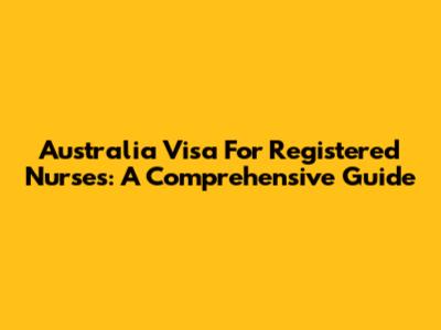 Australia Visa For Registered Nurses: A Comprehensive Guide