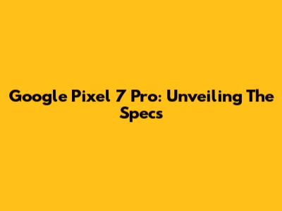 Google Pixel 7 Pro: Unveiling The Specs