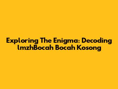 Exploring The Enigma: Decoding 'lmzhBocah Bocah Kosong'
