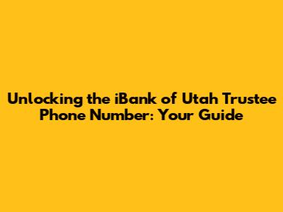 Hey guys! Ever found yourself in a situation where you absolutely need to get in touch with the iBank of Utah trustee, and you're frantically searching for that all-important phone number? You're not alone! Navigating the world of financial institutions and their specific departments can sometimes feel like a treasure hunt, especially when you're dealing with trustee services. Whether you're a client, a legal professional, or just someone with a query related to a trust managed by iBank of Utah, having direct access to their trustee department's contact information is crucial. This article is all about cutting through the confusion and giving you a clear path to finding that iBank of Utah trustee phone number you're looking for. We'll dive into why you might need it, the best ways to go about finding it, and what you can expect when you connect with their team. So, grab a coffee, settle in, and let's get this sorted!