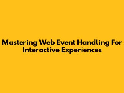 Mastering Web Event Handling For Interactive Experiences