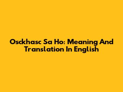 Osckhasc Sa Ho: Meaning And Translation In English