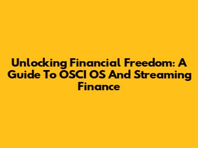 Unlocking Financial Freedom: A Guide To OSCI OS And Streaming Finance