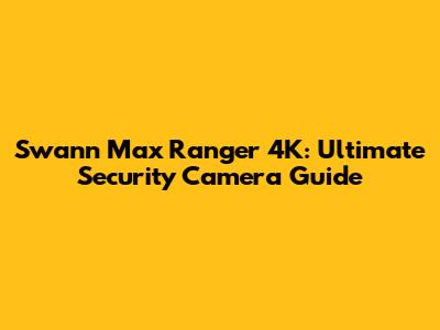 Swann Max Ranger 4K: Ultimate Security Camera Guide