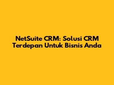 NetSuite CRM: Solusi CRM Terdepan Untuk Bisnis Anda