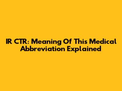 IR CTR: Meaning Of This Medical Abbreviation Explained