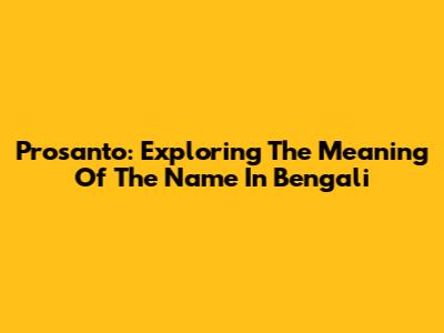 Prosanto: Exploring The Meaning Of The Name In Bengali