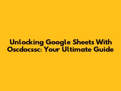 Unlocking Google Sheets With Oscdocssc: Your Ultimate Guide