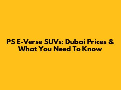 PS E-Verse SUVs: Dubai Prices & What You Need To Know