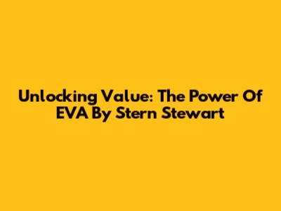 Unlocking Value: The Power Of EVA By Stern Stewart