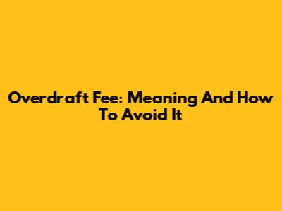 Overdraft Fee: Meaning And How To Avoid It