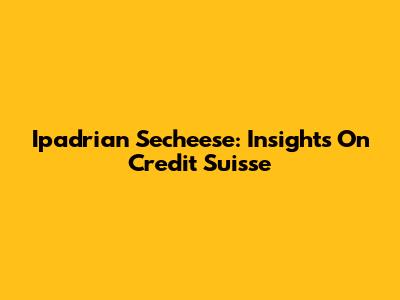 Ipadrian Secheese: Insights On Credit Suisse