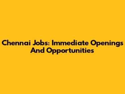 Chennai Jobs: Immediate Openings And Opportunities