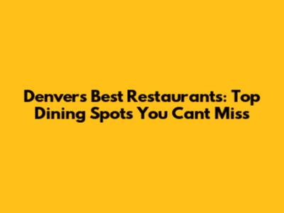 Denver's Best Restaurants: Top Dining Spots You Can't Miss