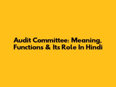 Audit Committee: Meaning, Functions & Its Role In Hindi