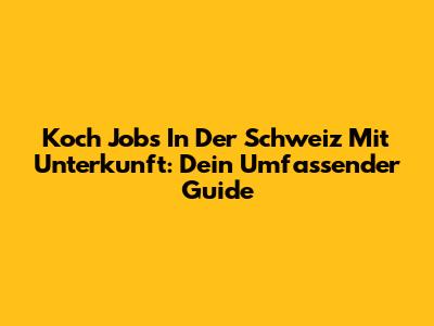 Koch Jobs In Der Schweiz Mit Unterkunft: Dein Umfassender Guide