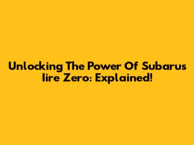 Unlocking The Power Of Subaru's Iire Zero: Explained!