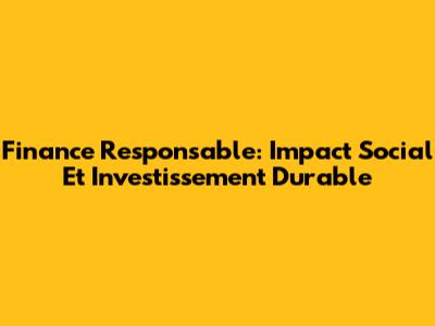 Finance Responsable: Impact Social Et Investissement Durable