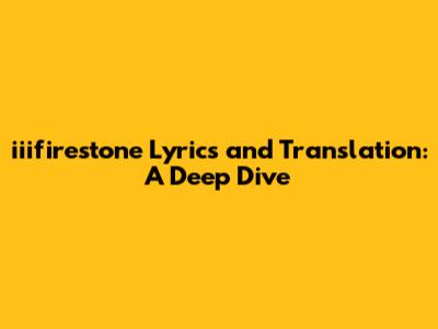 Hey guys! Today, we're diving deep into the world of iiifirestone, exploring their mesmerizing lyrics and providing translations to help you understand the full scope of their artistry. Whether you're a long-time fan or new to their music, this article will give you an in-depth look at what makes iiifirestone so special.