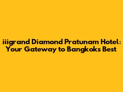 Hey there, travel enthusiasts! Are you dreaming of a trip to the vibrant city of Bangkok? If you are, then you're in for a treat! And if you're looking for a fantastic place to stay that combines comfort, convenience, and a touch of luxury, look no further than the iiigrand Diamond Pratunam Hotel. This gem is nestled in the heart of the Pratunam district, offering easy access to some of Bangkok's most exciting attractions. In this article, we'll dive deep into what makes the iiigrand Diamond Pratunam Hotel such a popular choice for travelers, covering everything from its prime location to its top-notch amenities. So, buckle up, because we're about to explore one of Bangkok's best-kept secrets!