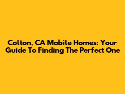 Colton, CA Mobile Homes: Your Guide To Finding The Perfect One