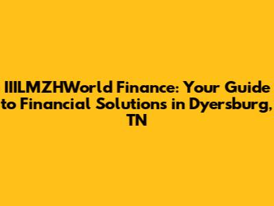Hey guys! Are you looking for reliable financial solutions in Dyersburg, Tennessee? Look no further! In this comprehensive guide, we'll dive deep into IIILMZHWorld Finance, exploring their services, impact, and how they can help you achieve your financial goals. Let's get started!