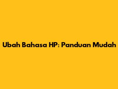 Ubah Bahasa HP: Panduan Mudah