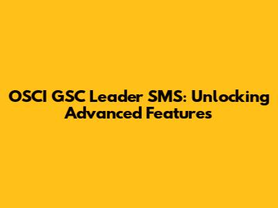 OSCI GSC Leader SMS: Unlocking Advanced Features