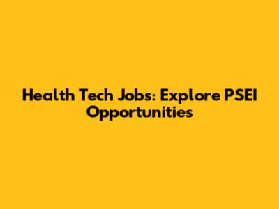 Health Tech Jobs: Explore PSEI Opportunities