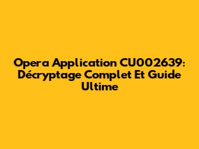 Opera Application CU002639: Décryptage Complet Et Guide Ultime