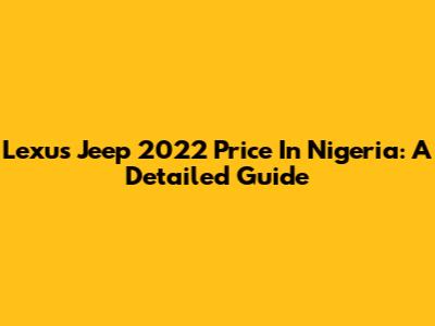 Lexus Jeep 2022 Price In Nigeria: A Detailed Guide
