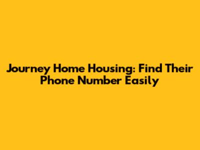Journey Home Housing: Find Their Phone Number Easily
