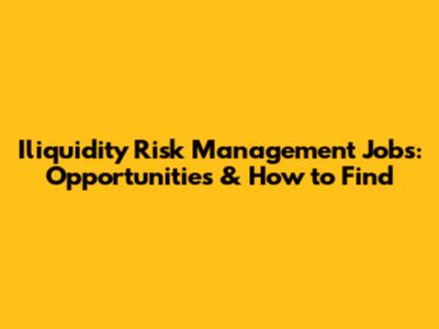 Hey guys! Are you looking to dive into the world of iliquidity risk management? You're in the right place! This article will break down what iliquidity risk management jobs entail, the skills you'll need, and where to find these exciting opportunities. Whether you're a seasoned pro or just starting, understanding this field is super important in today's financial landscape. So, let's get started and explore the ins and outs of iliquidity risk management jobs.