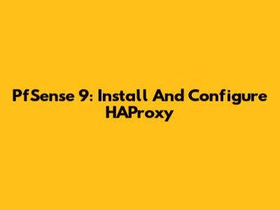 PfSense 9: Install And Configure HAProxy