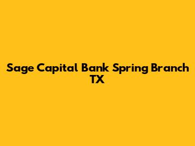 Sage Capital Bank Spring Branch TX