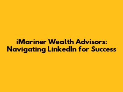 Hey guys! Let's dive into something super important for iMariner Wealth Advisors: how to crush it on LinkedIn. Seriously, in today's digital world, having a killer presence on LinkedIn isn't just a nice-to-have; it's a MUST-HAVE. It's where you build your brand, connect with clients, and establish yourself as a thought leader in the wealth management space. We're going to break down how iMariner Wealth Advisors can leverage LinkedIn to the max. From crafting the perfect profile to generating leads, we'll cover it all. So, grab a coffee (or your beverage of choice), and let's get started on how to turn LinkedIn into a powerhouse for iMariner!