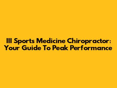 III Sports Medicine Chiropractor: Your Guide To Peak Performance