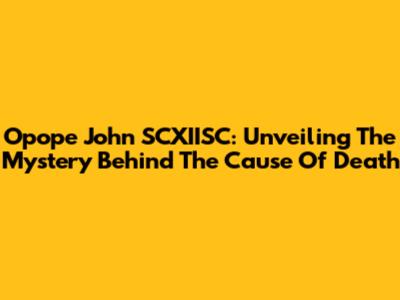 Opope John SCXIISC: Unveiling The Mystery Behind The Cause Of Death