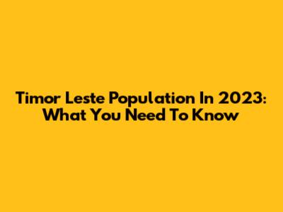 Timor Leste Population In 2023: What You Need To Know