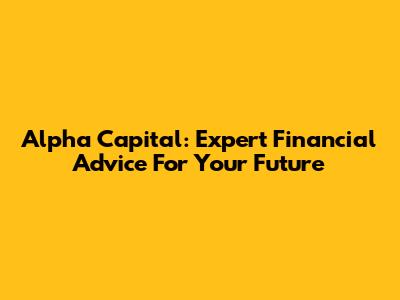 Alpha Capital: Expert Financial Advice For Your Future