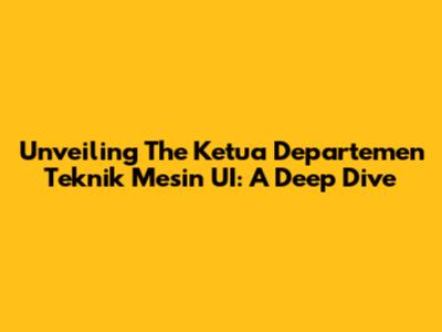 Unveiling The Ketua Departemen Teknik Mesin UI: A Deep Dive
