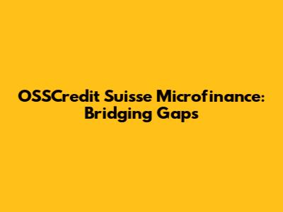 OSSCredit Suisse Microfinance: Bridging Gaps