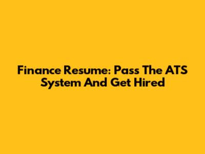 Finance Resume: Pass The ATS System And Get Hired