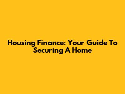 Housing Finance: Your Guide To Securing A Home