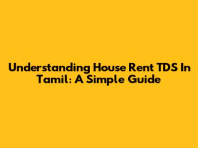 Understanding House Rent TDS In Tamil: A Simple Guide