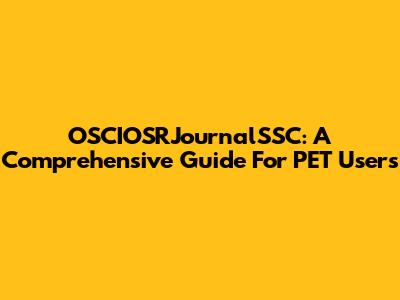 OSCIOSRJournalSSC: A Comprehensive Guide For PET Users