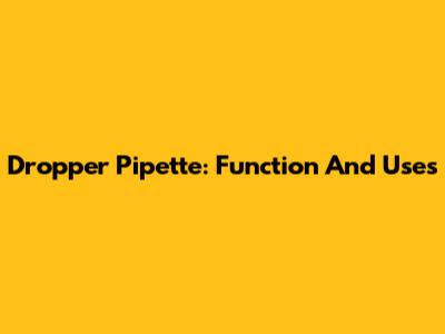Dropper Pipette: Function And Uses