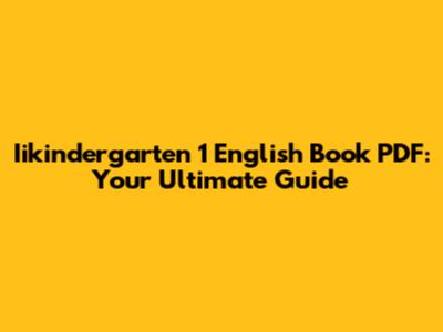 Iikindergarten 1 English Book PDF: Your Ultimate Guide