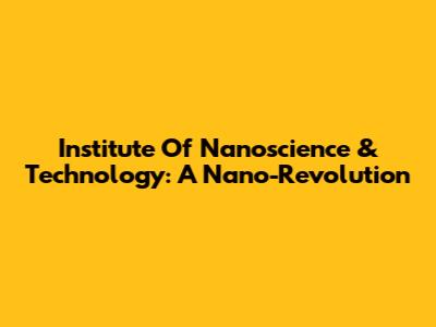 Institute Of Nanoscience & Technology: A Nano-Revolution